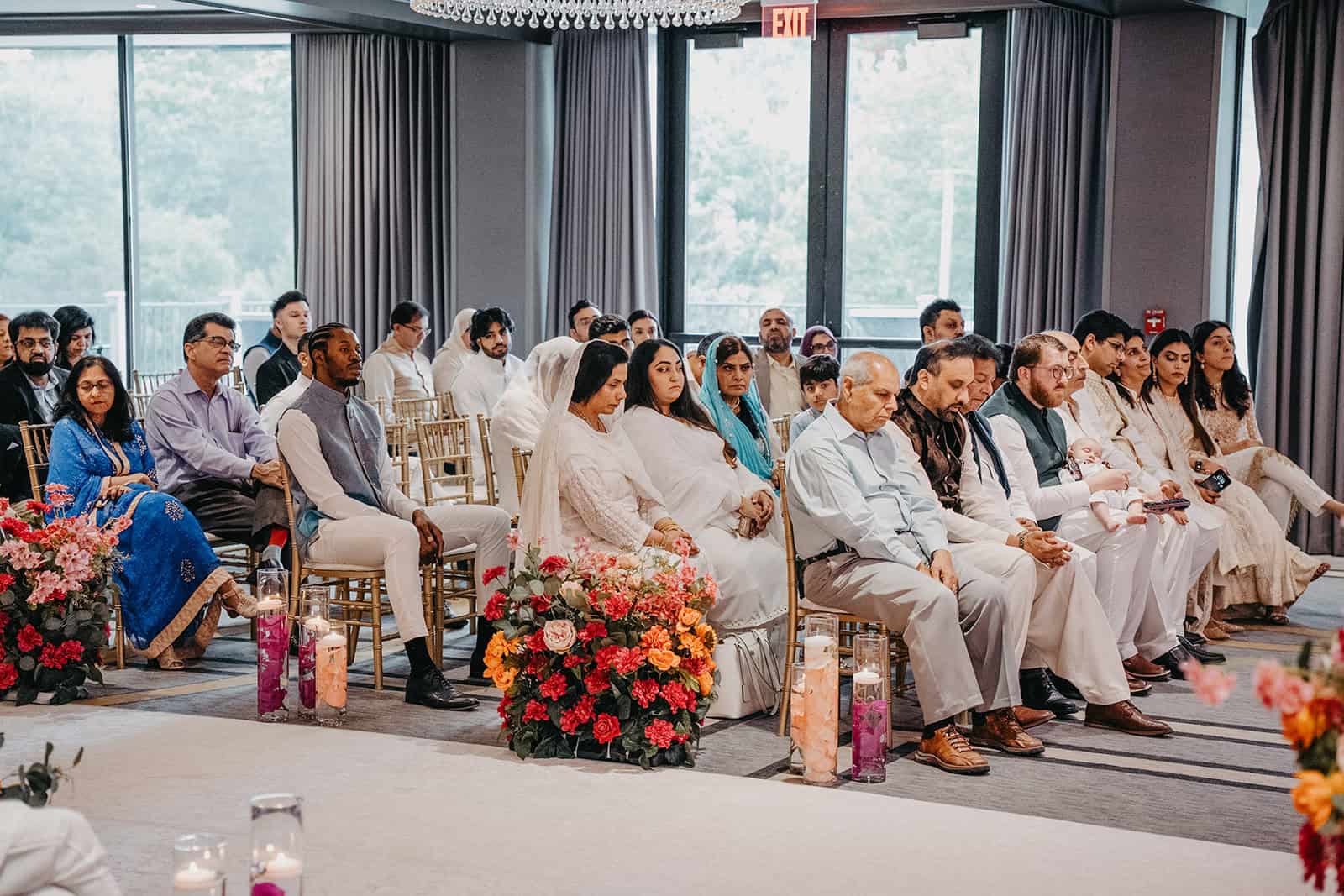 For Hoor and Kumeil’s Nikkah, the room was intimate and layered with meaning — family pressed close, the emotion on faces unmistakable. Kumeil’s family had traveled from Dubai to witness this moment. That weight was visible. The joy was visible. The prayers were visible in every bowed head.