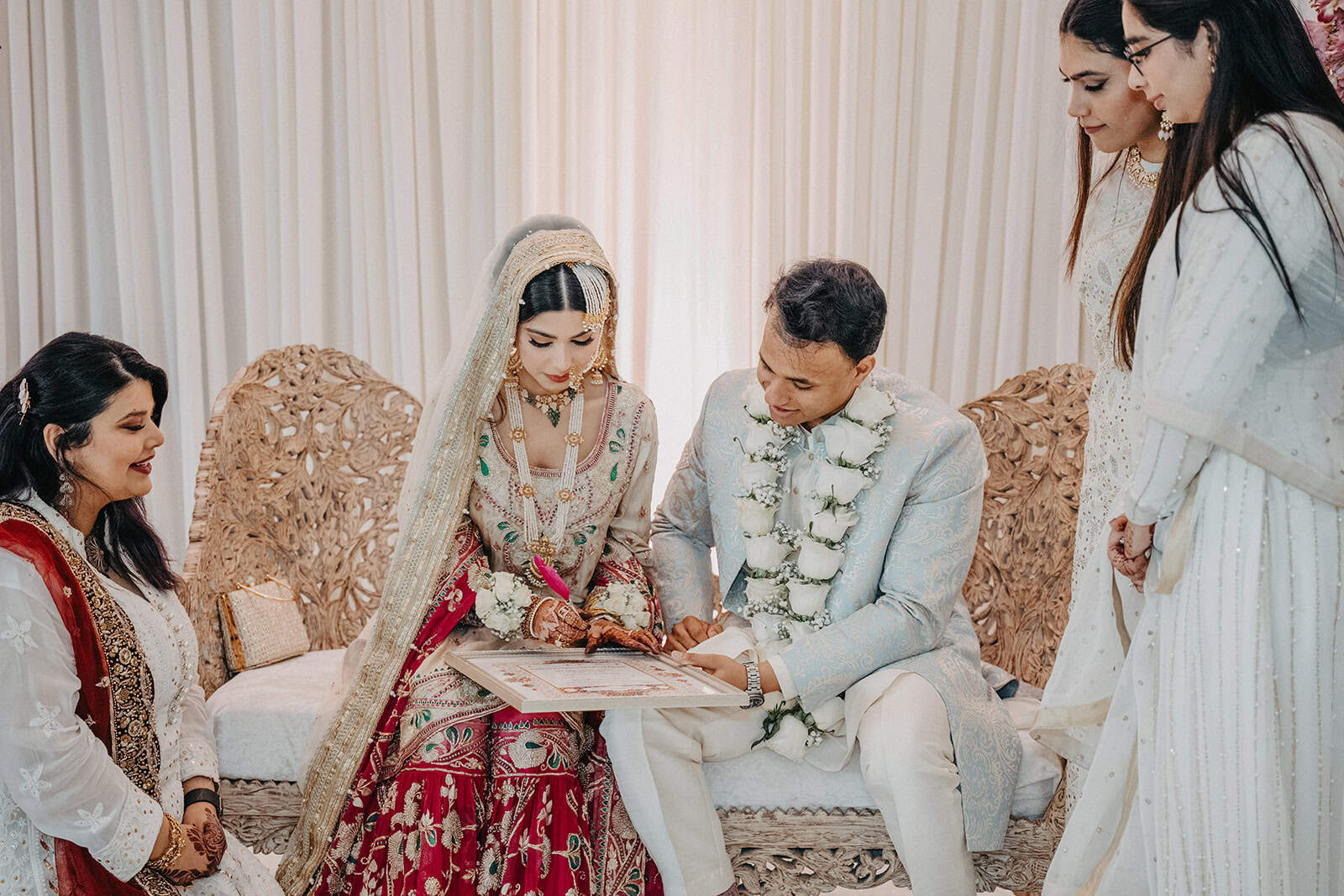 The Nikkah — the Islamic marriage contract, the sacred heart of a Muslim wedding — is a ceremony of stillness within a celebration of movement. Where Mehndi night is energy and color and noise, the Nikkah is quiet intention. The signing of the contract. The exchange of consent. The prayers that bind two people before God and their families.