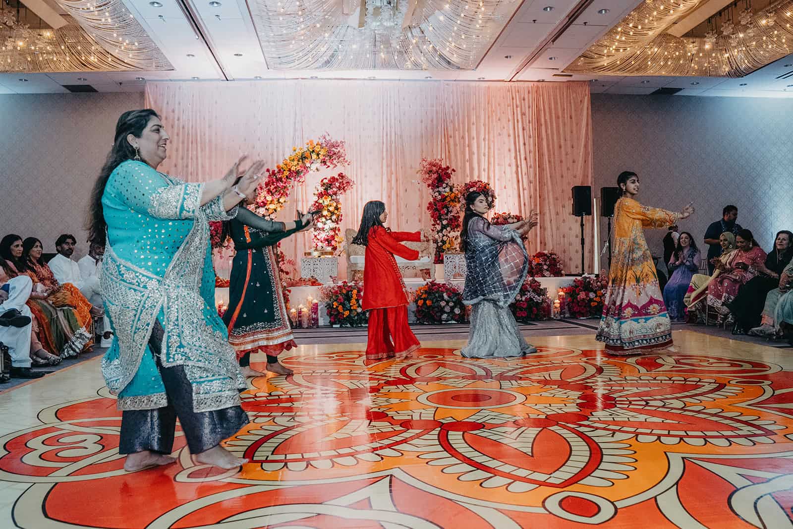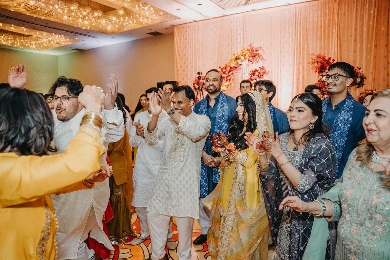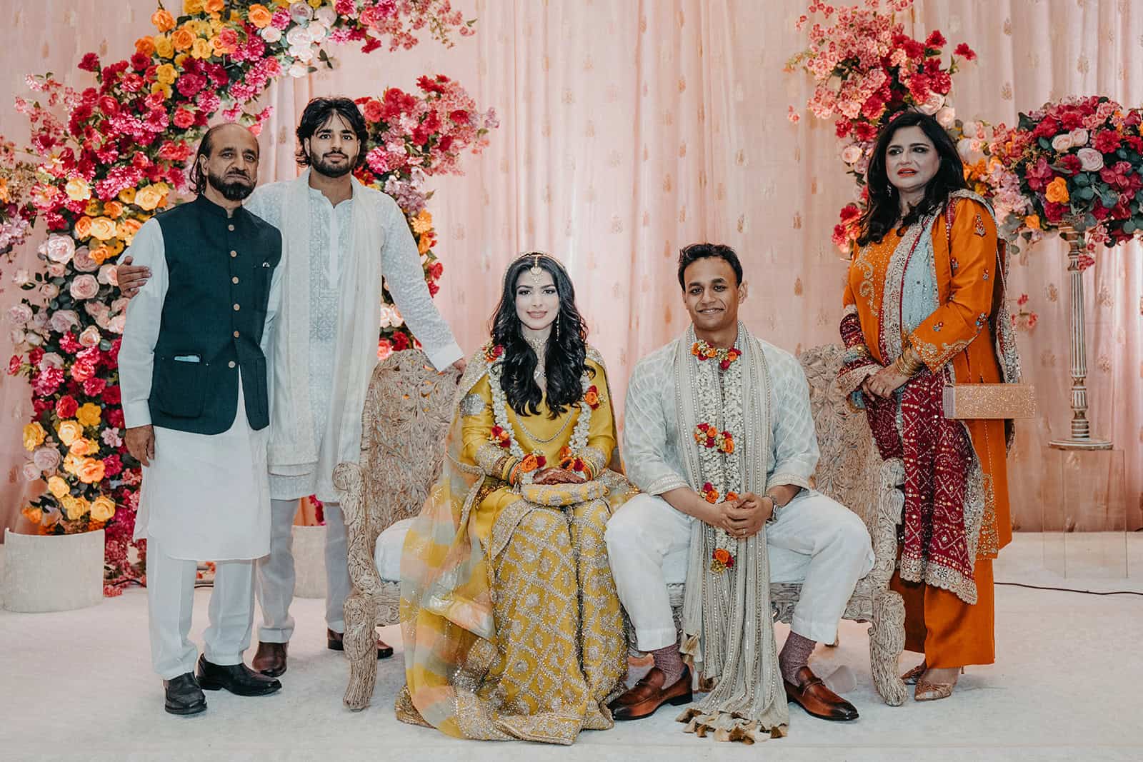 We documented everything — the room in its full color, the intricate details of the henna artist’s work, the family portraits that will outlast any centerpiece or playlist. Every image from this night was made with the understanding that Mehndi is not a warm-up act. It is a ceremony in its own right, and it deserved the same attention we would give any other moment of the four days.