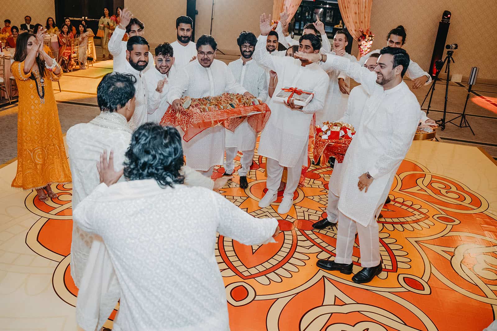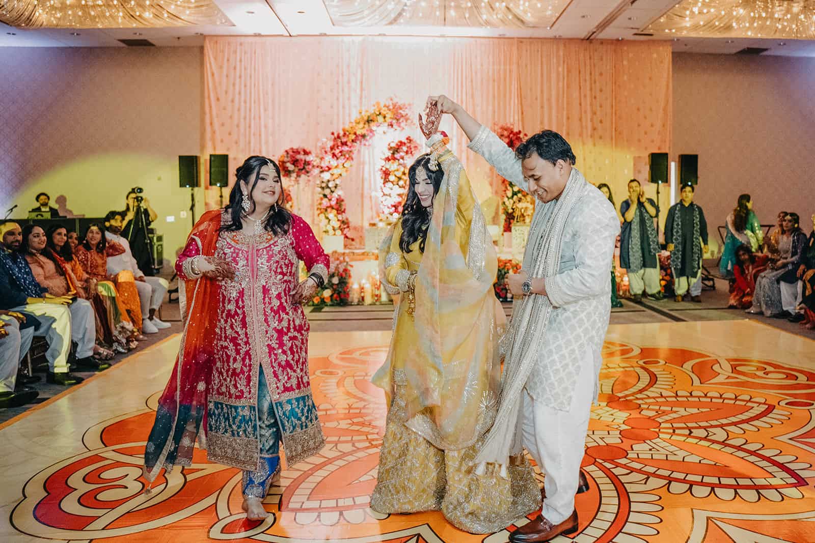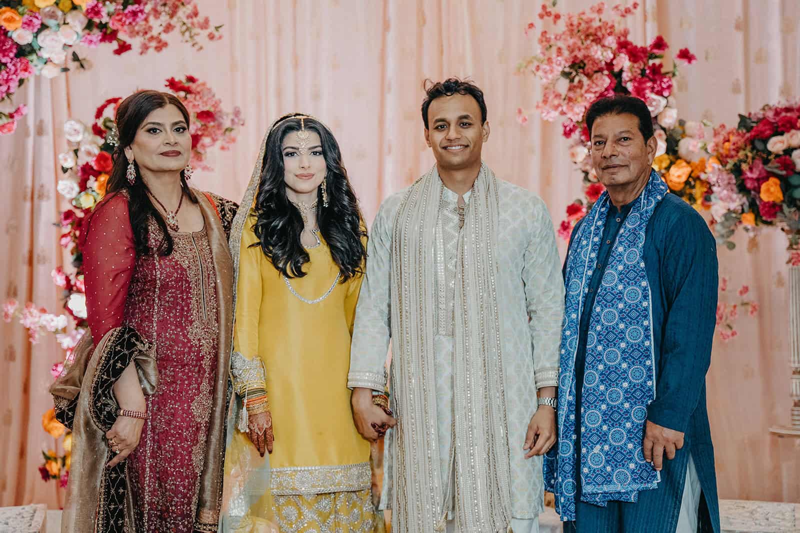 We documented everything — the room in its full color, the intricate details of the henna artist’s work, the family portraits that will outlast any centerpiece or playlist. Every image from this night was made with the understanding that Mehndi is not a warm-up act. It is a ceremony in its own right, and it deserved the same attention we would give any other moment of the four days.