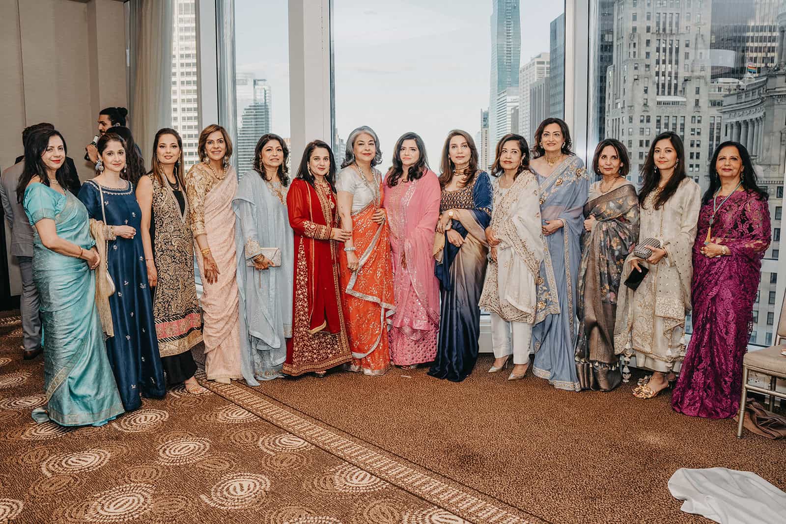 Hoor’s bridal look against that backdrop — the detail of her outfit, her jewelry, the way the Chicago light hits fabric at that height — these are images made to last a lifetime. Kumeil’s family, having flown from Dubai, watched from the terrace with an emotion that was visible and impossible not to document.