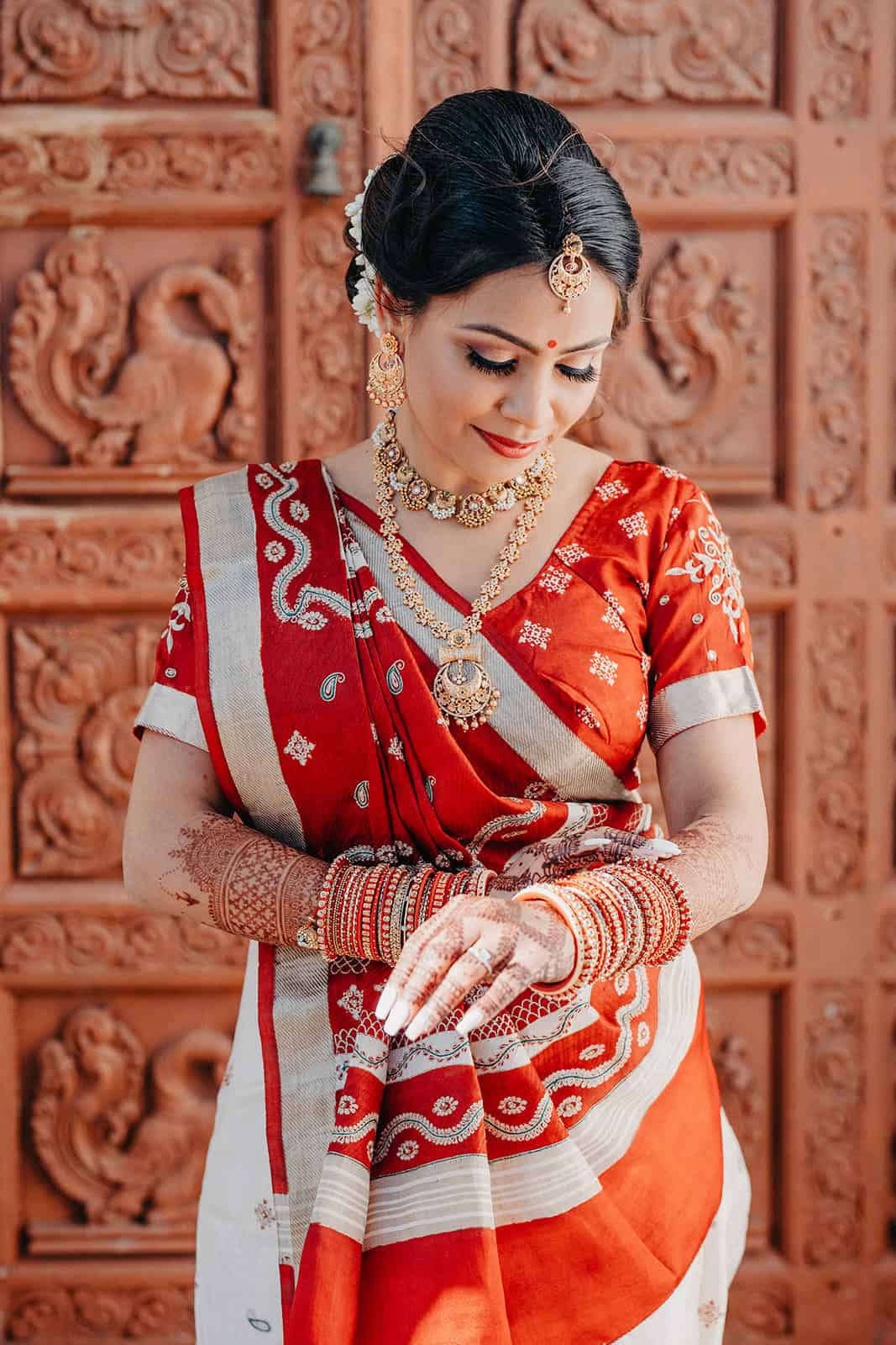 From the colorful floral designs to traditional attire, every element spoke of heritage and love. The bride’s red and gold saree shimmered beautifully in the golden-hour light, while the groom arrived with energy and joy during the baraat procession.