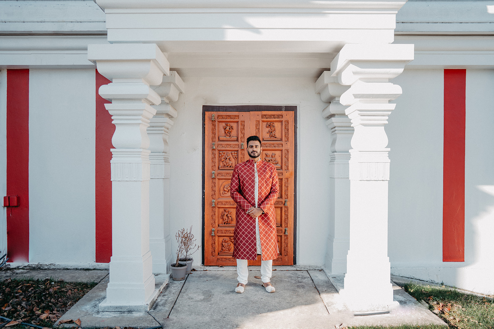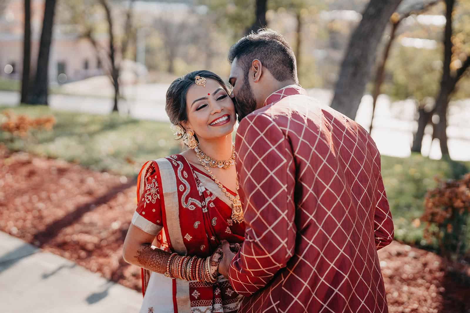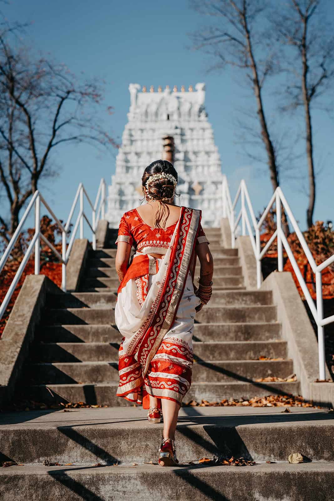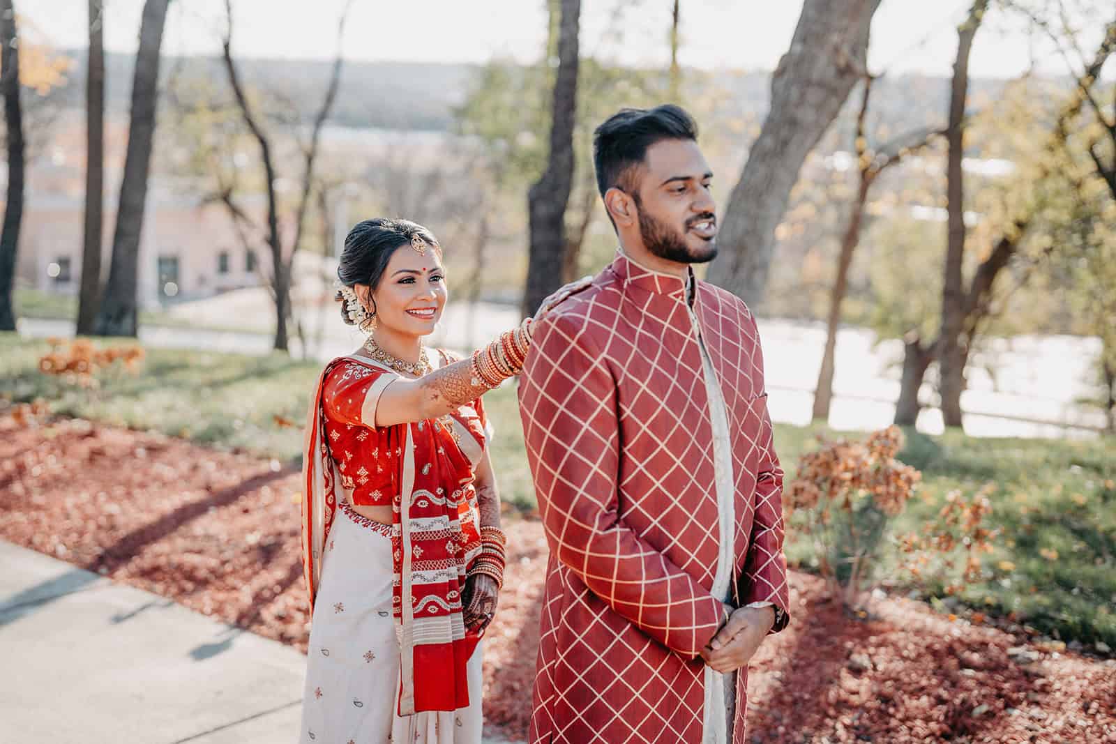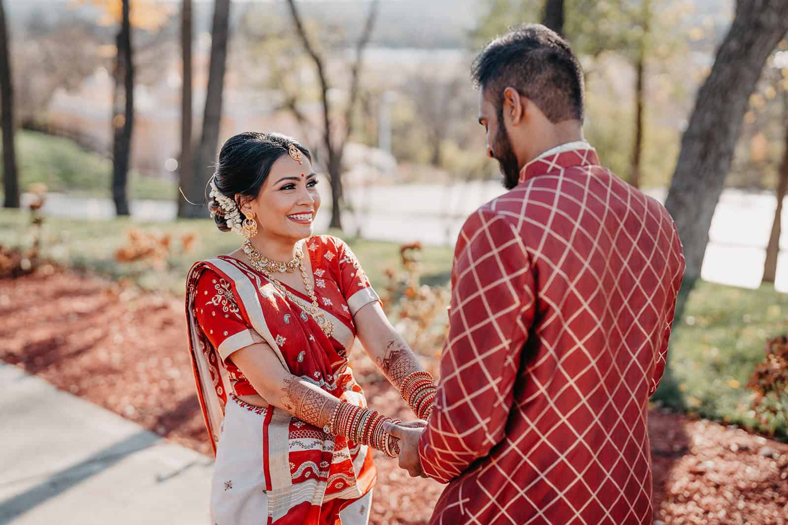 Located in Lemont, Illinois, the Hindu Temple of Greater Chicago offers a serene yet majestic setting for Hindu weddings. The temple grounds provided an elegant backdrop for the couple’s first look, family portraits, and ceremonial moments.