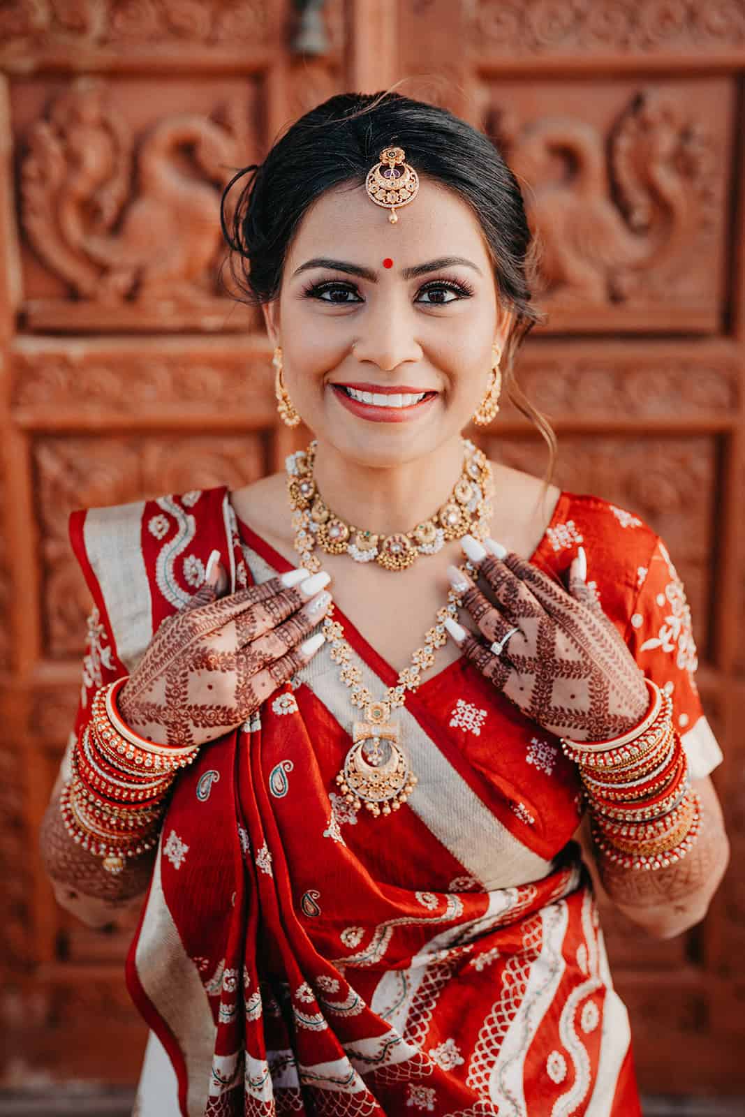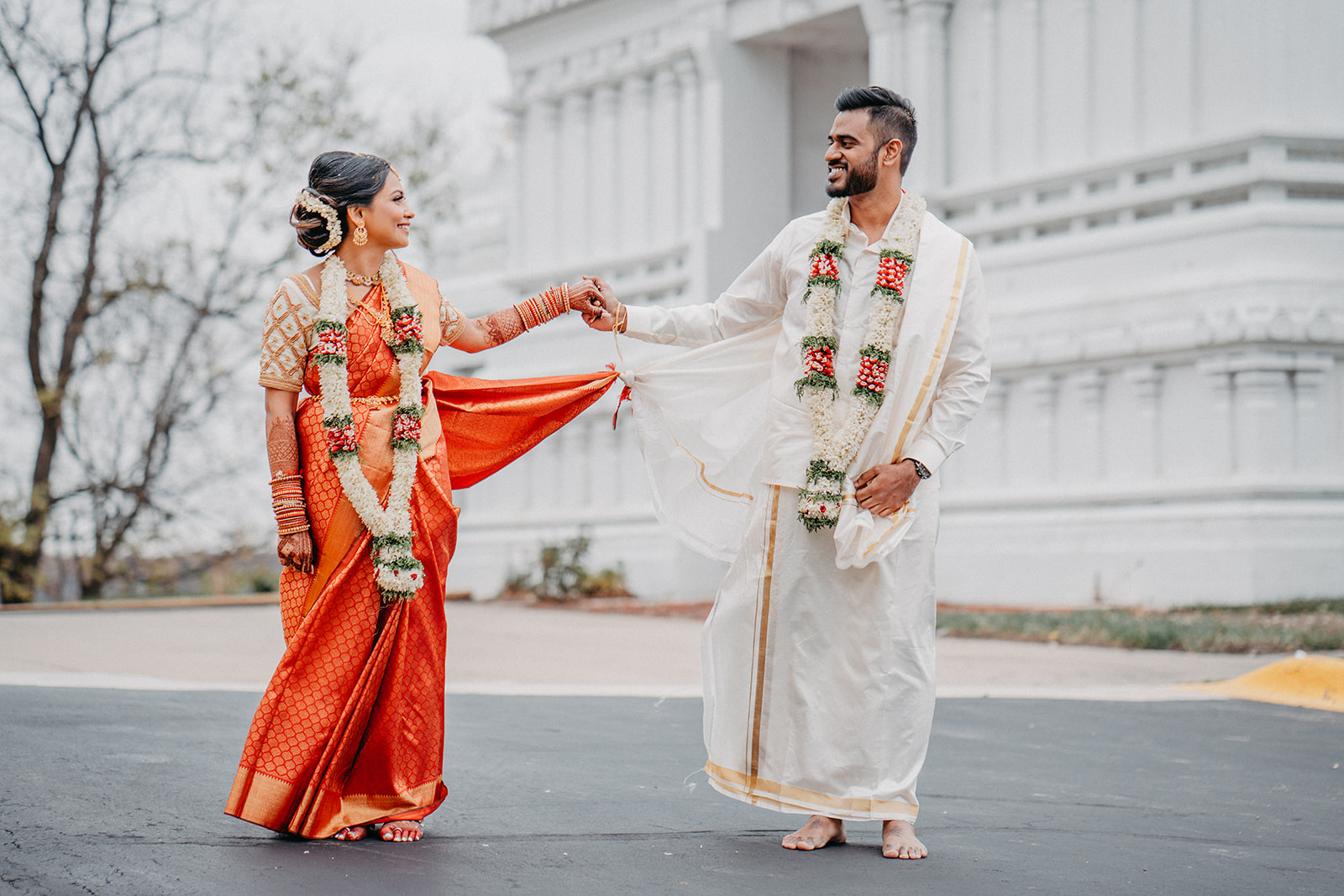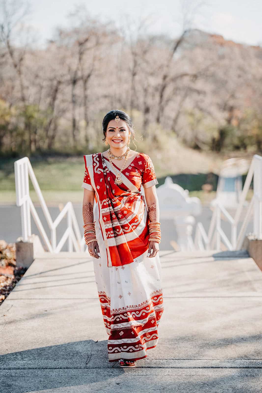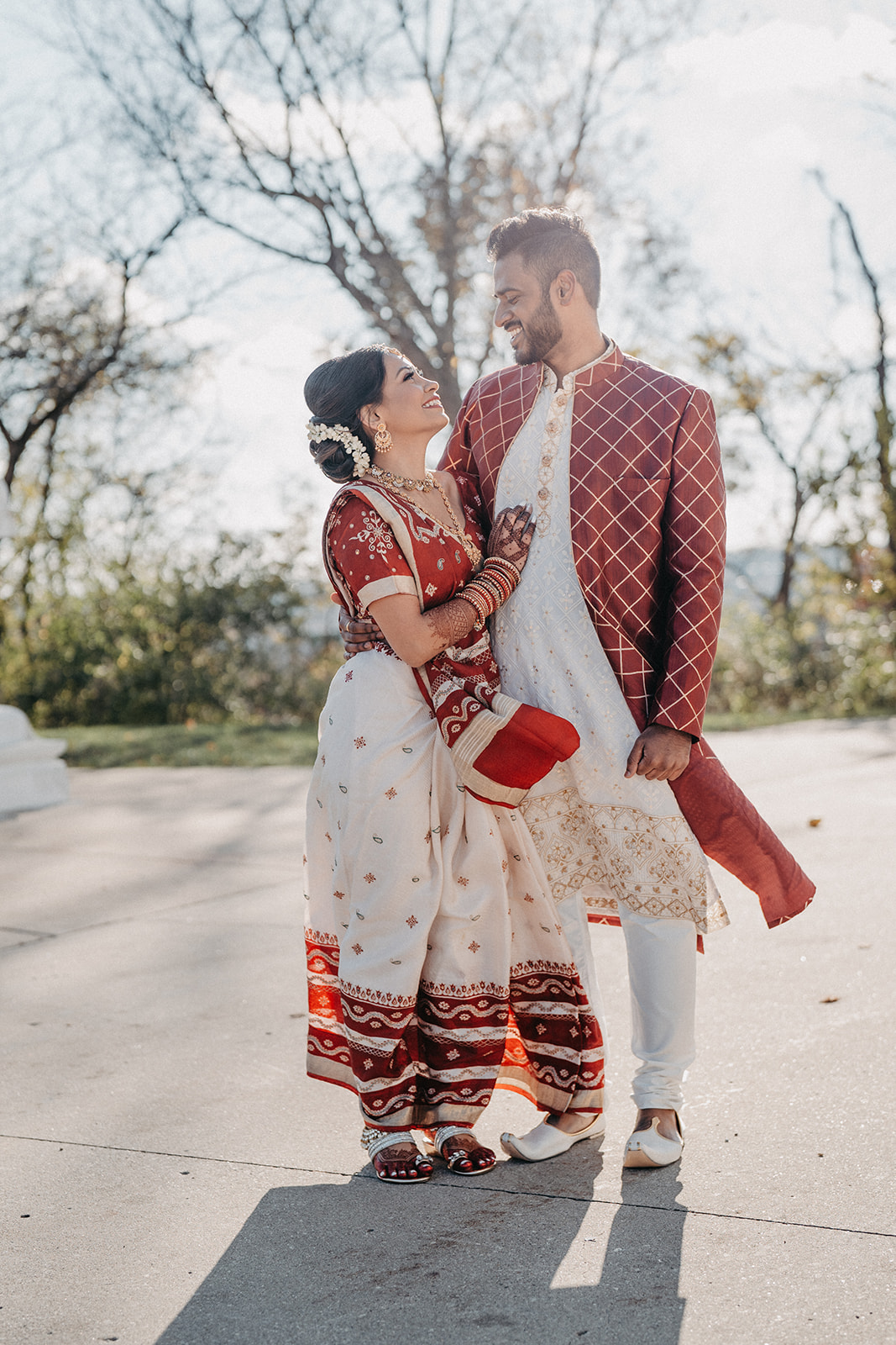 Located in Lemont, Illinois, the Hindu Temple of Greater Chicago offers a serene yet majestic setting for Hindu weddings. The temple grounds provided an elegant backdrop for the couple’s first look, family portraits, and ceremonial moments.
